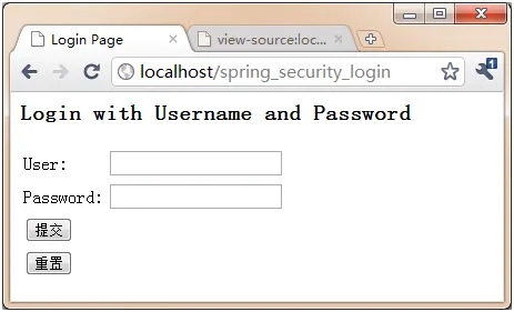 要求身份验证了,这就说明对url的拦截起作用了,想发布消息,权限不够了,要验证身份了,注意这里这个页面并不是我们前面写的那个页面,而是Security框架的默认验证页面,为什么没有使用我们所写的页面呢?因为我们还没有配置它啊,当然不会被识别到了。我们来看看默认的页面源码是什么样子的:
