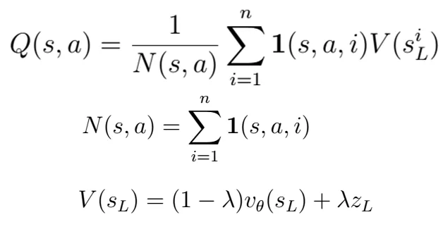 Q看上去有点复杂,其实就是模拟N次以后,AlphaGo认为她模拟这步赢得平均概率。