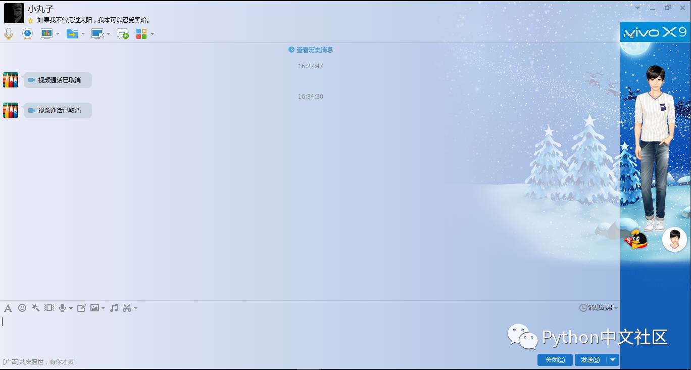 另外还有一个条件,电脑上运行这个脚本的时候必须把你要进行视频通话的聊天窗口打开并且最大化。就像这样: