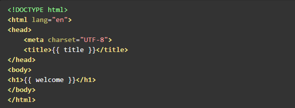 这是一个标准的 html 文档了,只是里面有两个比较奇怪的地方:{{ title }},{{ welcome }},这是 django 规定的语法。用 {{ }} 包起来的叫做模板变量。django 在读取这个模板的时候回根据我们传来值替换这些变量。最终在模板中显示的将会是我们传递的值。