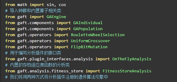 这样我们便脱离每次都要写遗传算法流程的繁琐,每次只需要像写插件一样实现自己的算子和适应度函数便可以将其放入gaft开始对算法进行测试或者对目标函数进行优化了。