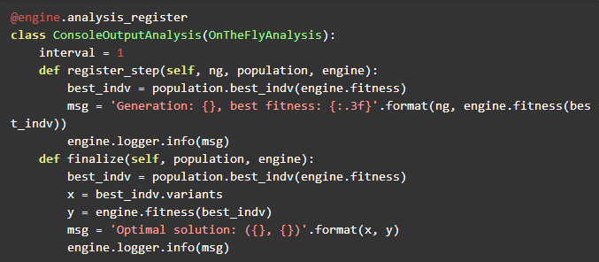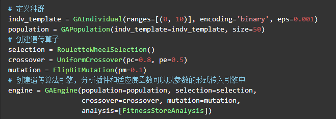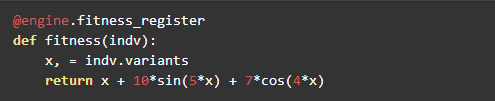 可以通过修饰符的方式将,适应度函数注册到引擎中。