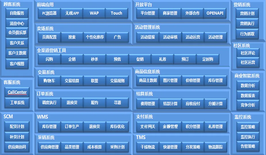 所谓产品,落地之后就是系统,或者说产品线。前面提到了业务运营上需要很多玩法,对于一个综合电商来说,很难用一套系统来实现,即便是规模很小,花样多了,也需要合理的建模和解耦,搞成一大坨就丧失了灵活性和扩展性。