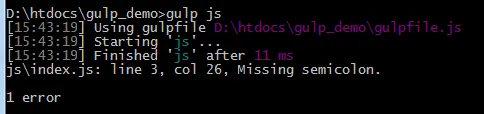 上面的jshint是用来分析代码的,例如分号没写。通过打指令“gulp-jshint”。