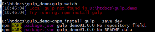 如果在某个工程文件夹中提示错误,那就手动再安装下“gulp”: