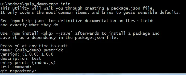 在命令窗口输入指令“cnpm init”。如果在Git Bash打这个指令,会报“No gulpfile found”的错误。