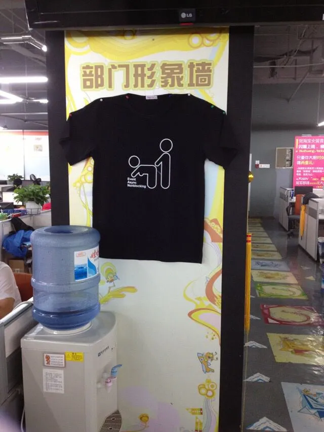 入职第一天,在西湖国际B座,阿里云OTS团队居然淘宝网的童鞋们在一起。在mentor带领下经过自己工位的路上,淘宝某部门的文化墙是这样的,让人哭笑不得,奔放又闷骚的程序员们,你们好!!