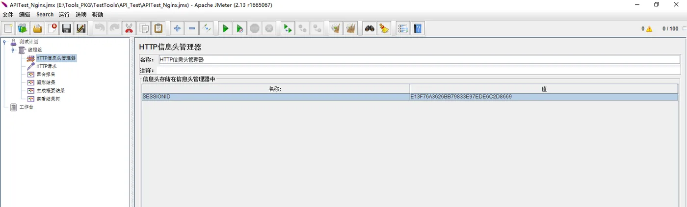 1. 增加:HTTP信息头管理器,并增加SESSIONID信息,如图: