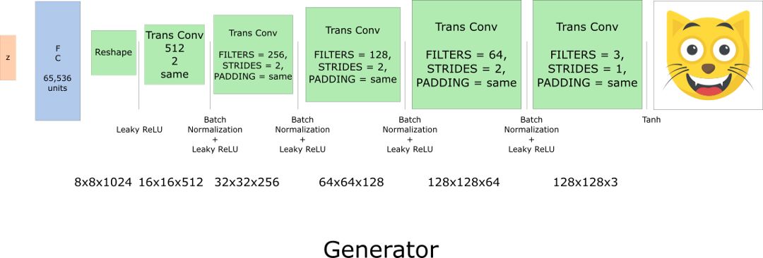 在这部分,我们将关注模型的主要元素。若你想看所有代码,请点这里的 notebook(https://github.com/simoninithomas/CatDCGAN/blob/master/Cat%20DCGAN.ipynb)。
