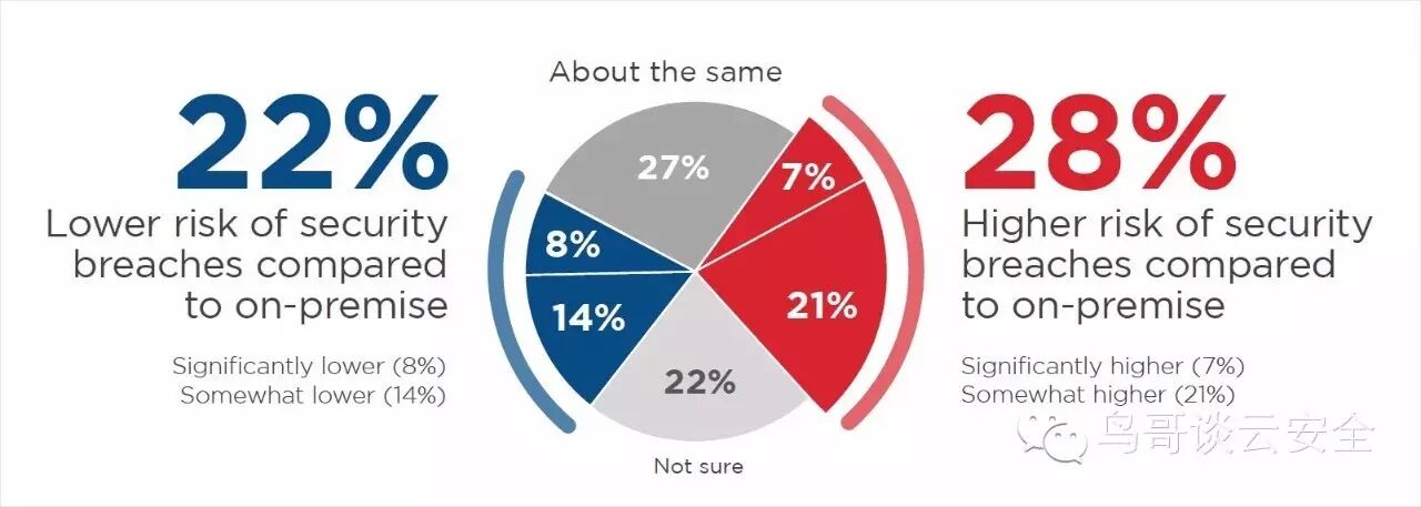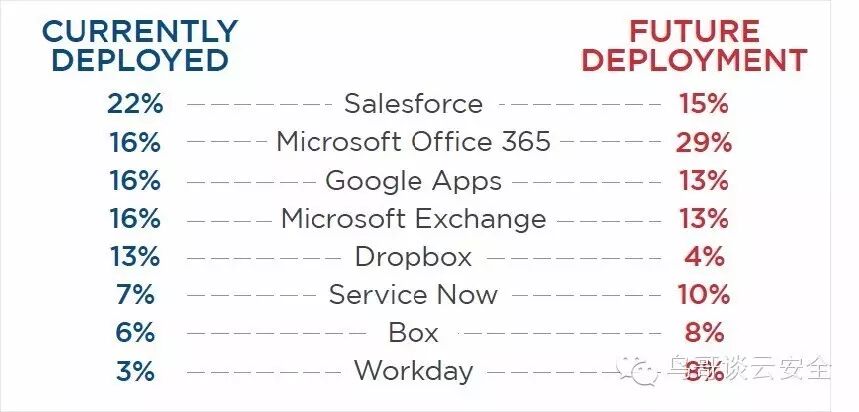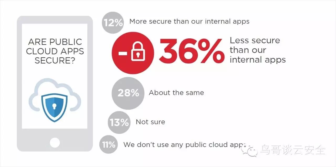 尽管SaaS服务提供商得到了大规模的投资,但是36%的受访者认为主要的云应用程序提供者(Salesforce和office 365)提供的应用程序不一定比内部部署的应用安全。