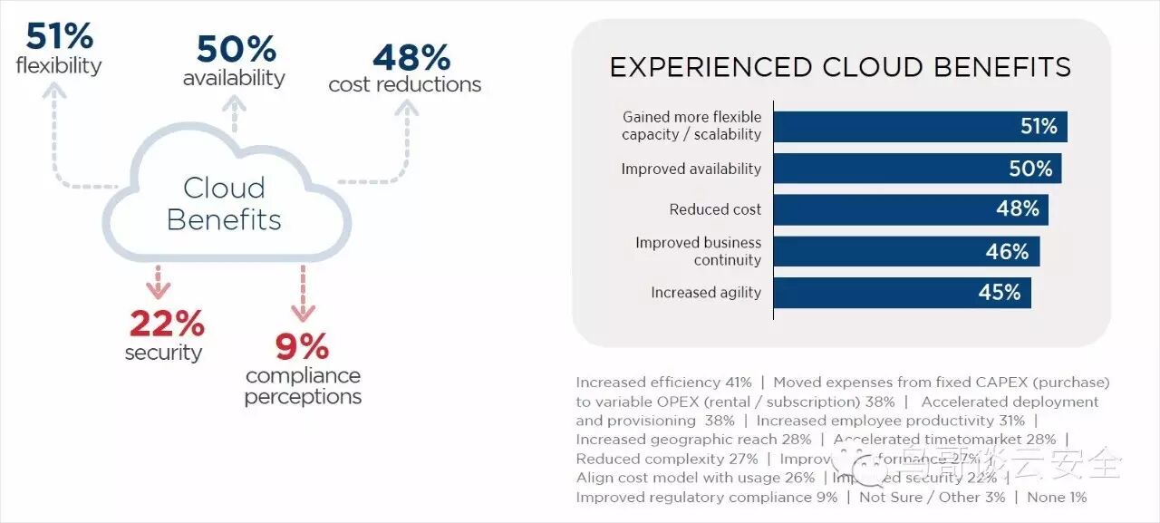 上云的一些好处进行深入挖掘,真正实现其灵活性的(51%),可用性的(50%)以及承诺削减成本的(48%)。