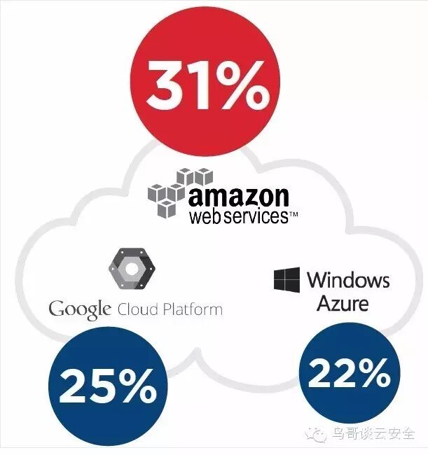 Amazon AWS是最大的服务提供者占比31%,Google 25%以及Microsoft Azure 22%.