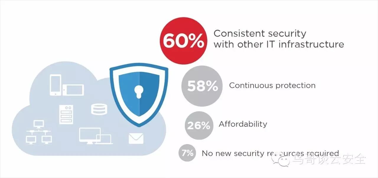 基础架构安全(60%),持续保护(58%)占了保护云环境的最重要的关键因素