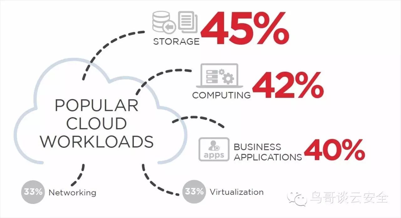 最流行的云wordloads部署了45%是存储,42%计算资源以及40%的业务应用系统。