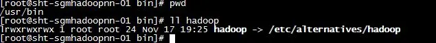 lrwxrwxrwx 1 root root 24 Nov 17 19:25 hadoop -> /etc/alternatives/hadoop