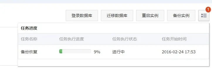 注:创建临时实例通常需要应用从备份开始时间点后的增量数据,因此如果指定的时间点和备份时间点间的增量数据比较多,或者实例数据量很大的情况下,临时实例创建会比较花时间,请耐心等待下。