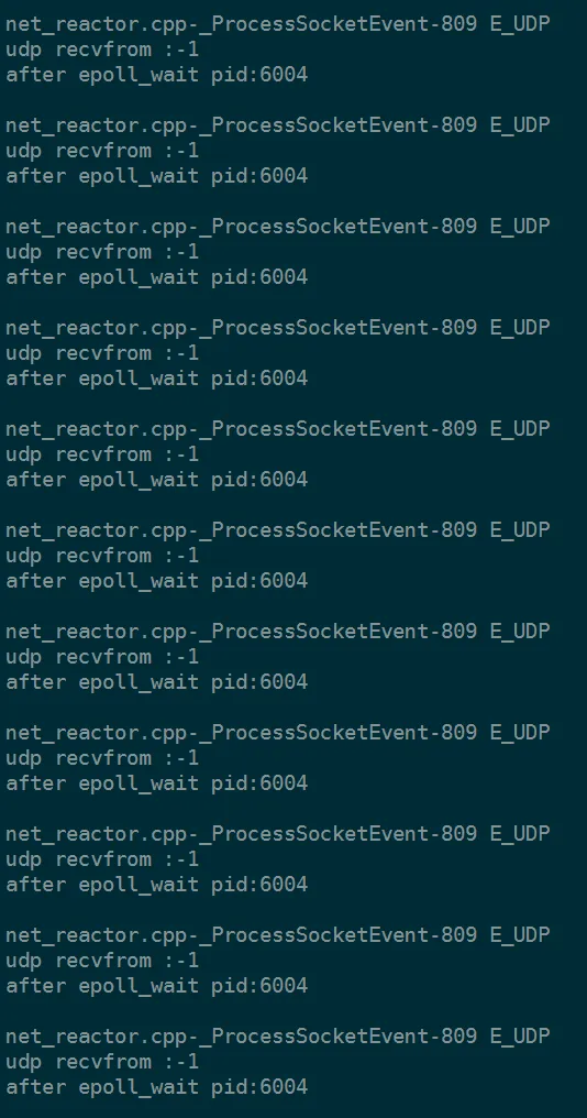 的进程不够及时。这个消息没处理。epoll的特性是会一直通知进程来处理。所以其他进程会一直读自己的unix域。然后就一直recvfrom =-1