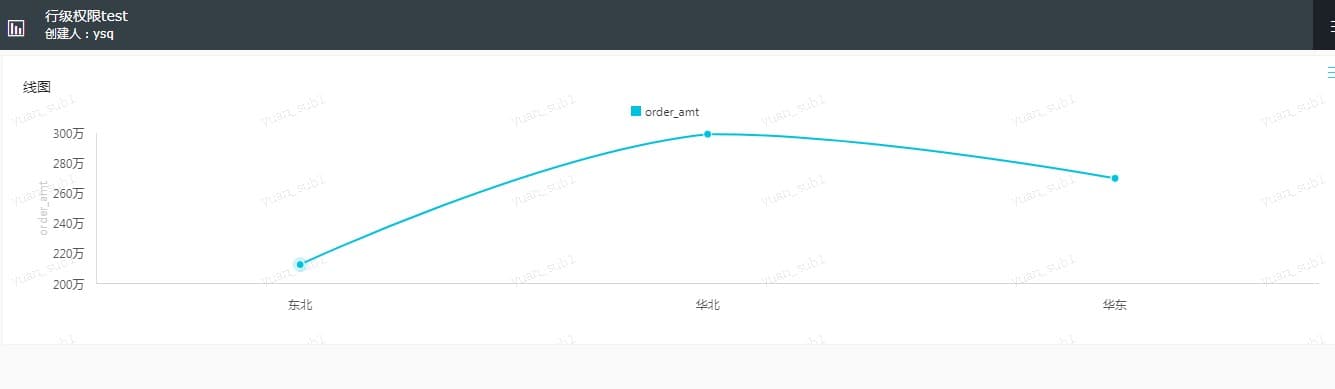 使用ysq账号登录,创建仪表板,添加字段:area、order_amt 保存为‘行级权限test’: