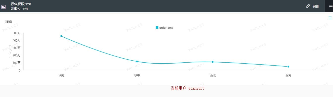 登录账号yuansub3/yuansub5,结果如下,只能查看 华南、华中、西北和西南区域 订单数据: