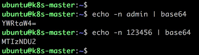kubectl create secret generic mysecret --from-literal=username=admin --from-literal=password=123456