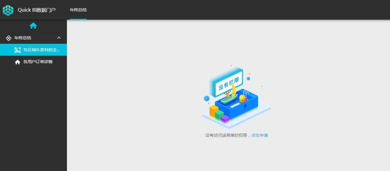 如下图,yuan_sub5用户打开数据门户链接,对内仪表板均无查看权限,需要申请: