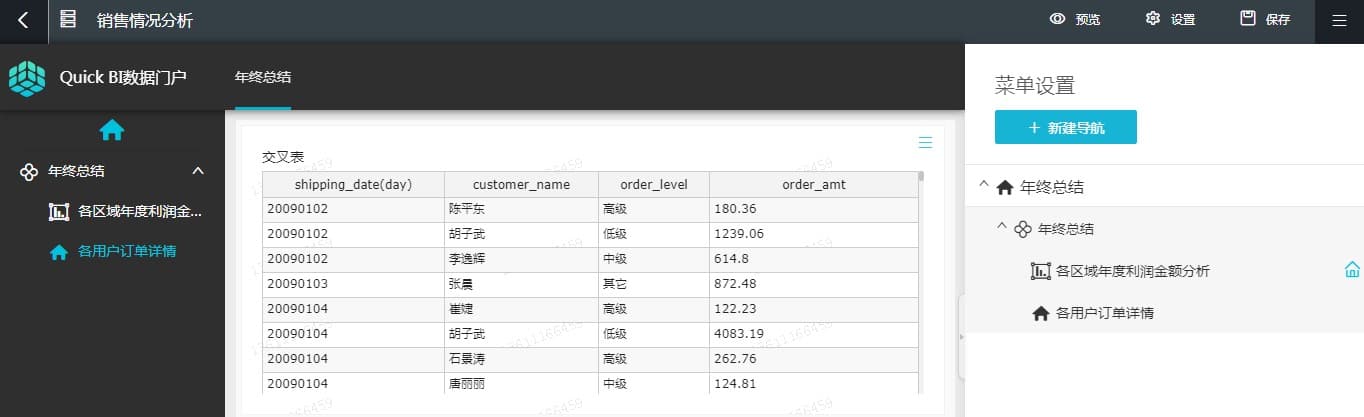 创建‘各区域年度利润金额分析’、‘用户订单详情’仪表板。