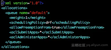 验证,配置文件配置root和default两个队列,调度策略都是drf。提交作业到default队列,正常运行,日志显示default队列分配到了vcores资源。