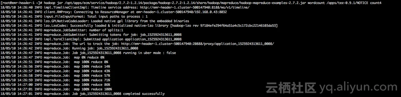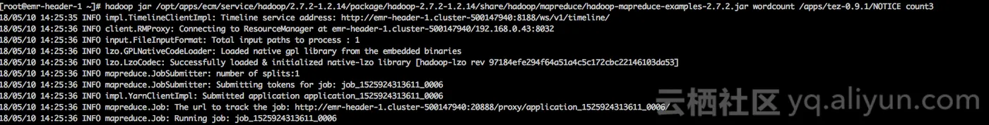 wordcount -D mapreduce.job.queuename=test /apps/tez-0.9.1/NOTICE count10