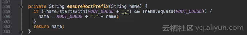 配置文件里写的队列名的规则是如果不是以root.开头或就是root,就增加“root.”前缀放到root根队列下。