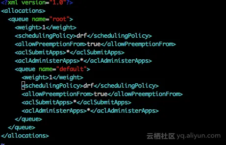 读配置文件时,如果有root队列或default/root.default队列,会覆盖这两个队列的默认配置。