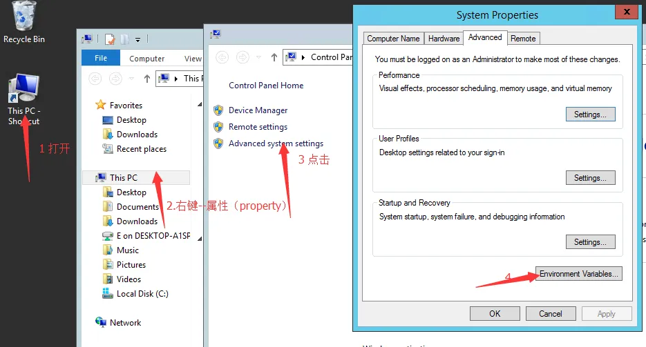 就是这里的第一步跟操作系统上不一样,需要点击进去后才能右键看见属性,做我们常规的环境变量操作。