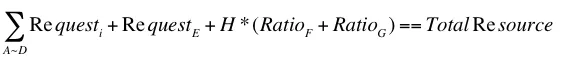 Requst(A~D) + RequestE + (RequestE / RatioE) * (ratioF + ratioG) < TotalRes && Requst(A~D) + RequestE +(RequestF / RatioF) * (ratioF + ratioG) >TotalRes