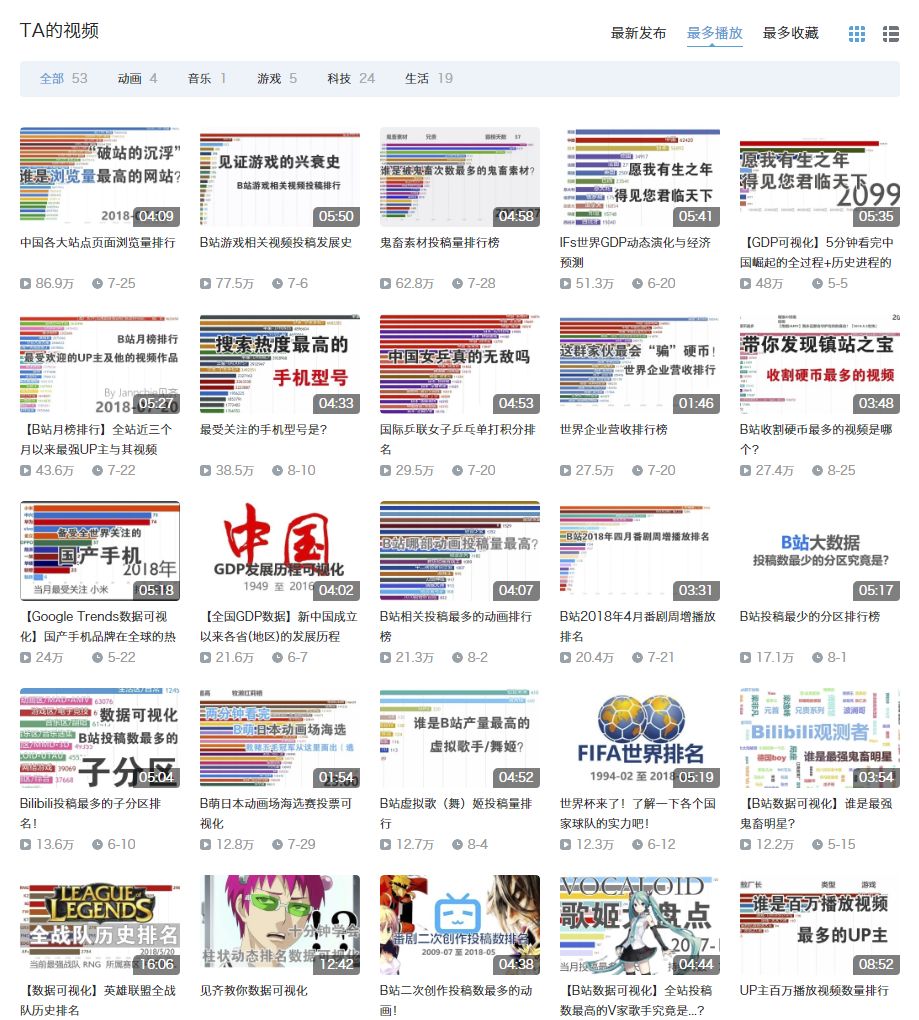 这些作品的作者是:@Jannchie见齐,他的主页:https://space.bilibili.com/1850091/#/video