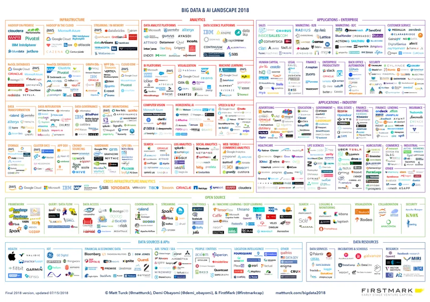 大数据和AI全景–2018(来源:http://mattturck.com/bigdata2018/)