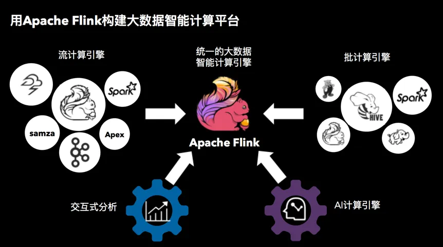 因此,阿里巴巴一直在思考是否可能有一套计算引擎解决如上的所有问题。经过仔细的选型,我们选择了Apache Flink,并围绕着Flink在打造一款通用计算引擎。Flink已经被业界公认是最好的流计算引擎。