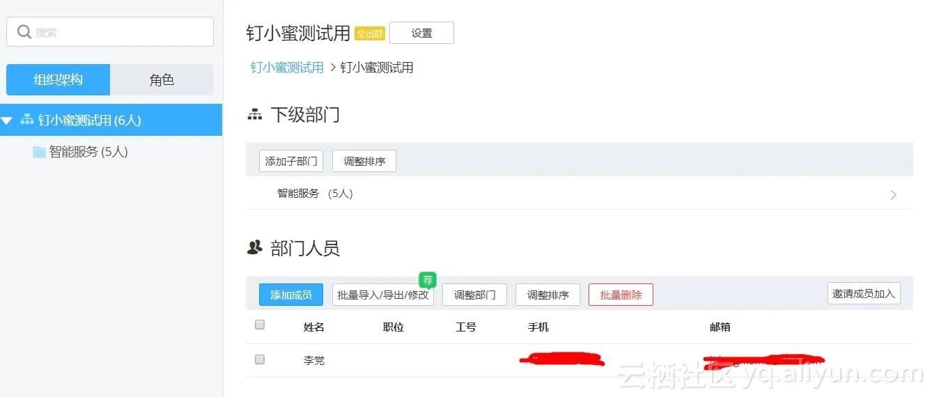 点击通讯录,进行部门人员绑定,具体如图: