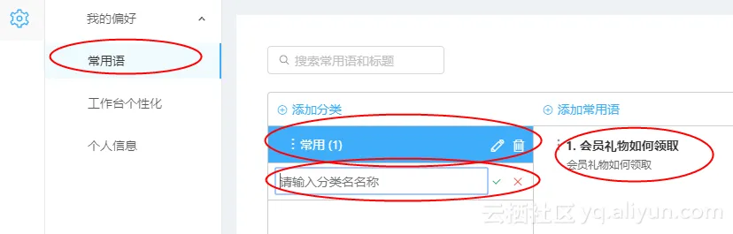 3.3.2常用语可以进行常用语的类目设置、内容设置等工作;
