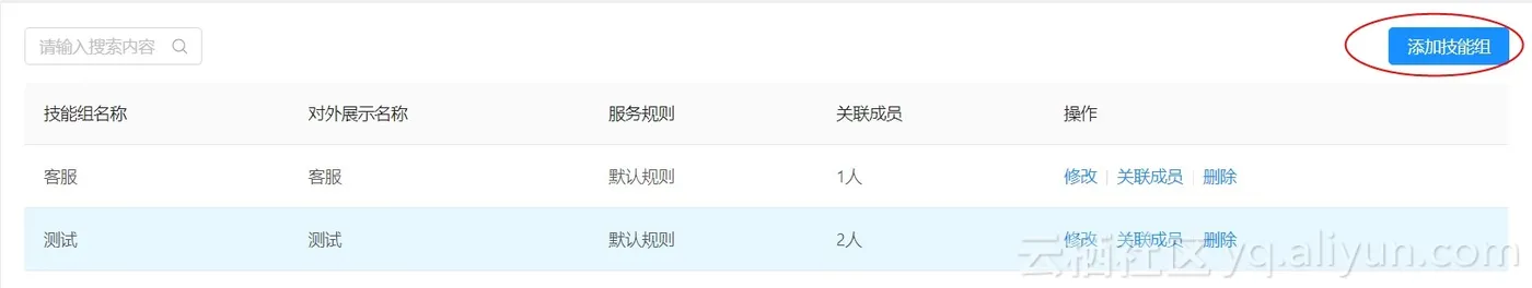 在创建好的技能组中,点击右侧“关联成员”,在弹出的框中输入关联成员信息,点选弹出的选项,选中完毕后点选“确认关联”: