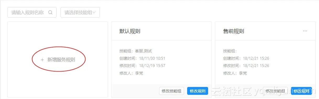 创建完毕人工服务规则后,可以点击相关技能组对人工服务规则进行重新绑定,各用户可按实际需要更改。