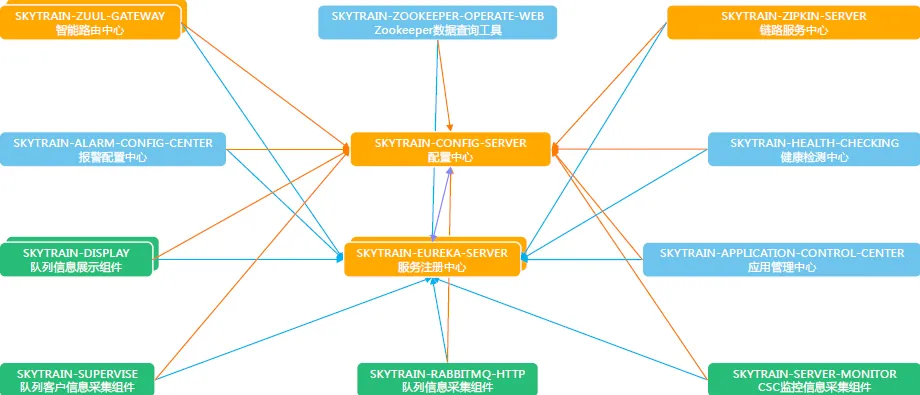 健康检测中心周期性检查每个微服务的状态,当发现有微服务状态处于DOWN或连接超时时,触发报警。
