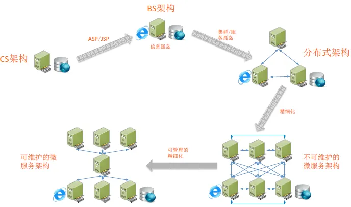 微服务的常规定义:微服务是一种架构风格,一个大型复杂软件应用由一个或多个微服务组成。系统中的各个微服务可被独立部署,各个微服务之间是松耦合的。每个微服务仅关注于完成一件任务。