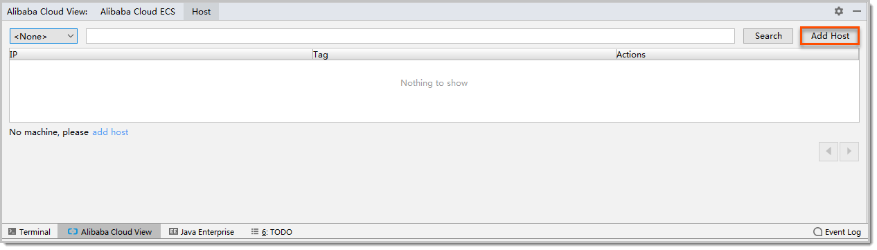 Tools>AlibabaCloud>AlibabaCloudView>Host - 在弹出的 Host 页签中单击 Add Host