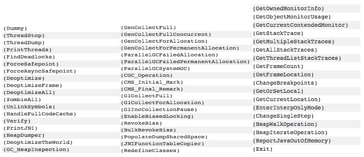 影响Java应用性能的头号大敌便是JVM停顿,说起停顿,大家耳熟能详的便是GC阶段的STW(Stop the World),除了GC,还有很多其他原因,如下图所示。