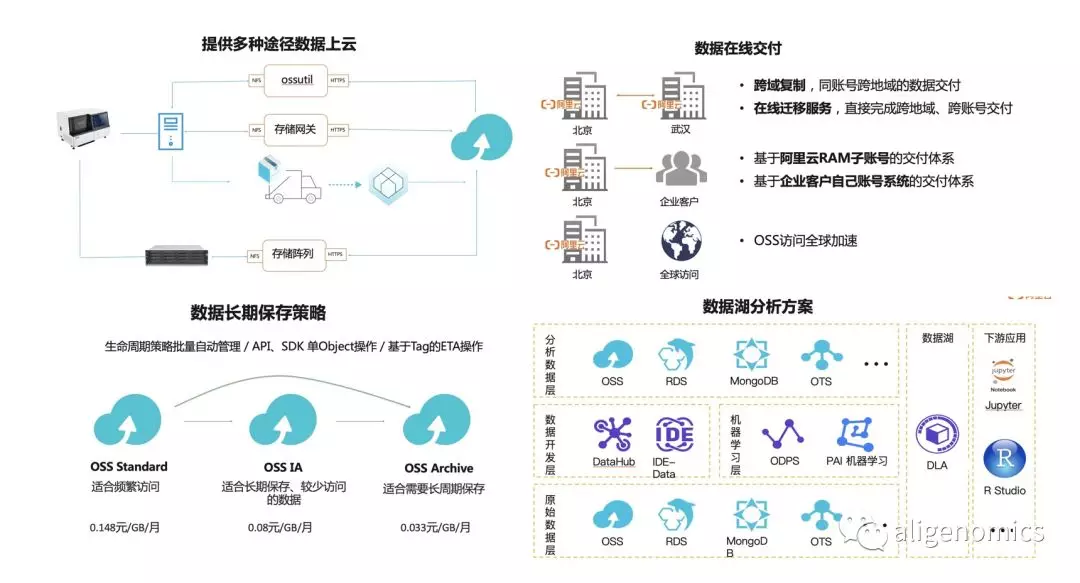 我们可以从三个角度,来谈谈阿里云的基因行业解决方案,我们为“全民”基因组时代准备的“新基础设施”