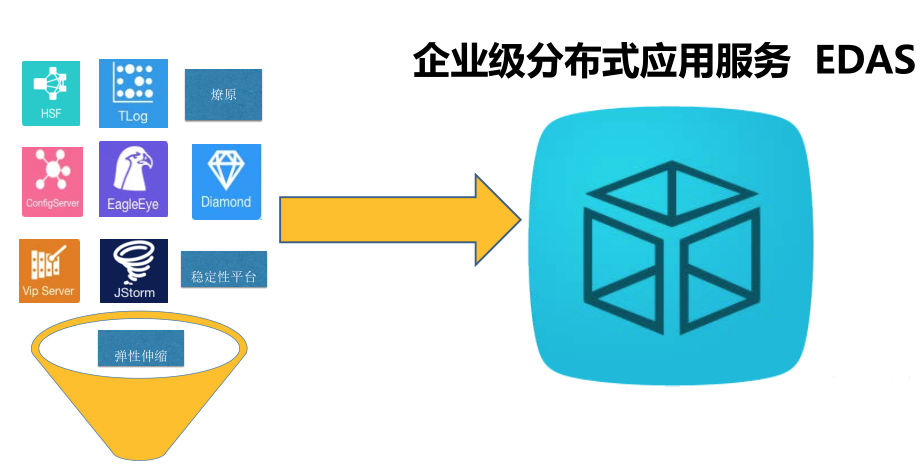 EDAS是一个高性能的服务框架,EDAS是由很多技术体系组成的一个整体包,如果想写一个web应用,使用这个开发套件,所有在业务开发需要的功能都集成在里面,所有和业务中间件相关的应用也集成到里面了,最关键之一就是HSF,HSF在阿里90%以上应用上使用,相对比较成熟,支持分布式事务,经历过七次双十一大促的考验,日均有千亿级的调用量。