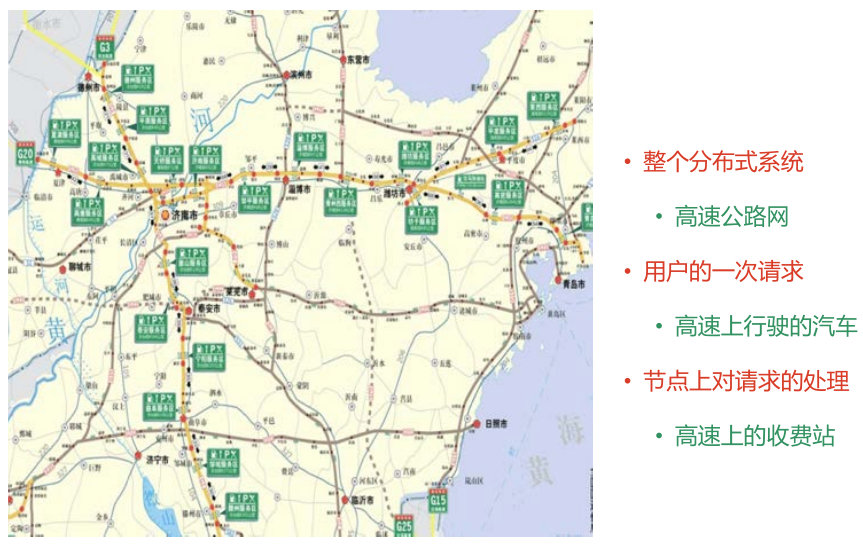 我们把整个系统现象成一个高速公路的路网,流量进来就如同行驶的汽车,如何能够知道汽车从哪里进来又从哪里出去呢?在高速公路上做很多的关卡,这样可以准确的追踪到所有连接的道路和通信,这样,哪里有问题都可以通过非常简单的方式得到检测,而这个检测对于发现和解决问题是非常简单的一件事,才有可能摆脱在服务化以后,复杂的系统运维和管控。
