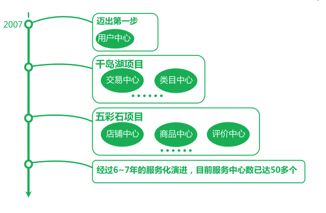 没有任何服务化的经验去借鉴,我们只能一步一步的摸着石头过河。我们做了几个关键性的努力,首先是用户中心迁出,从一个大的系统里拆出一小块放到外面,这就是用户中心,用户中心是一个比较简单纯粹的处理用户登录的系统,当时在内部就有六、七种登录方式,我们把这些方式全部代理出来,变成一个单独的服务中心。如果我们不把系统代码进行革新,就没有办法支撑,紧接着,我们就开始做自己的中间件的研发,千岛湖项目产生时,EDAS、MQ、DRDS就随着它一步步的演进到现在。交易中心是整个系统里最复杂的业务流程,几乎和所有业务系统有关联,当它用一些中间件完成整个系统的突破时,我们就可以认为看起来中间件和应用都准备好了。接着我们进行了第三个五彩石项目,商城和淘宝各有一套购买流程,我们需要用EDAS进行服务化改造,把这两套流程融合到一起,使之能同时支撑两个不同的出口,完成下一步的延伸。