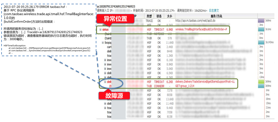 鹰眼监控就是解决内部非常复杂的多样链路的时候,怎样进行持续的收集、跟踪、统计,以帮助我们进行链路梳理的工具。比如从前面开始调用链路时有哪些异常,出现故障的地方都可以从这个调用链路上得到展现。