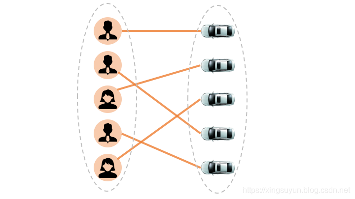 找寻司机和订单分配的全局最优是一个 二分图匹配问题 (bipartite graph matching) ,一边是乘客、一边是司机,可用运筹优化中各种解决Matching问题的方法进行求解。