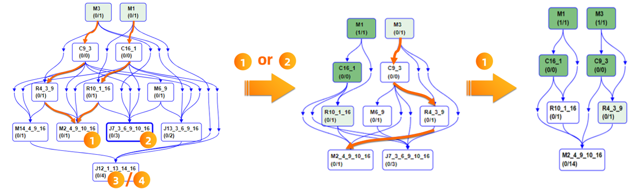 Fig. 7 嵌套conditional join在执行过程中的动态计划变化